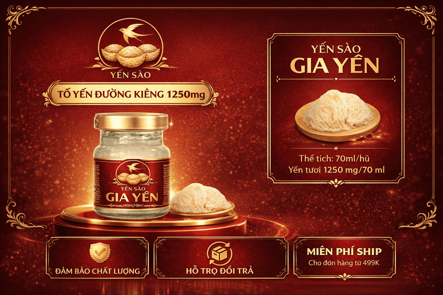 Yến Không Đường 1250mg Tổ Yến gồm: